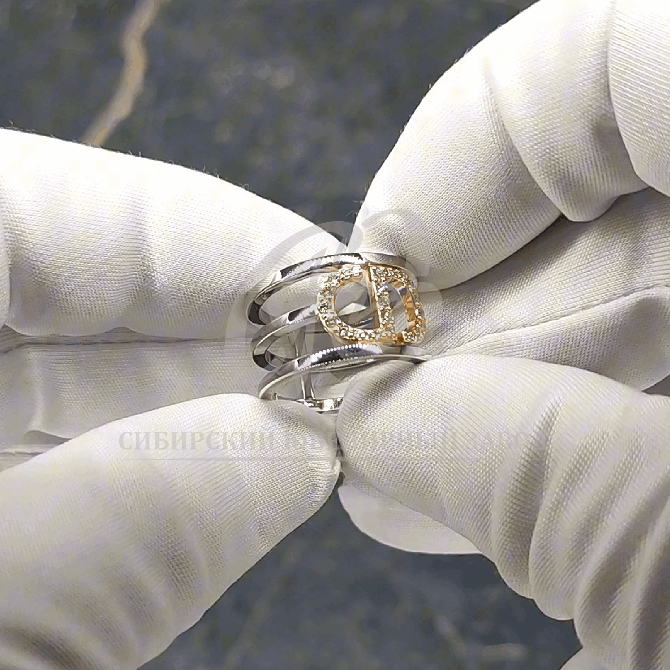 Кольцо из комбинированного золота с бриллиантами — выразительное, современное, оригинальное.